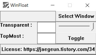 프로그램 이름은 WinFloat이고, 투명화, 항상위 기능을 제공한다.
